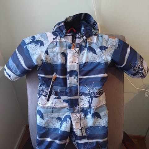 Reiman kevyt toppahaalari, koko 74. Siistissä käytetyssä kunnossa. Heijastimissa/polvissa pientä kulumaa. Jalkalenkit puuttuu, mutta näitä saa kaupasta. Nouto.