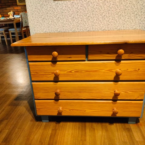 Hyväkuntoinen laatikosto koukuilla.
