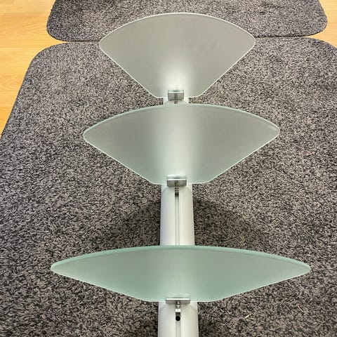 Hyvässä kunnossa oleva hyllykkö lasi ovilla. kolme osainen