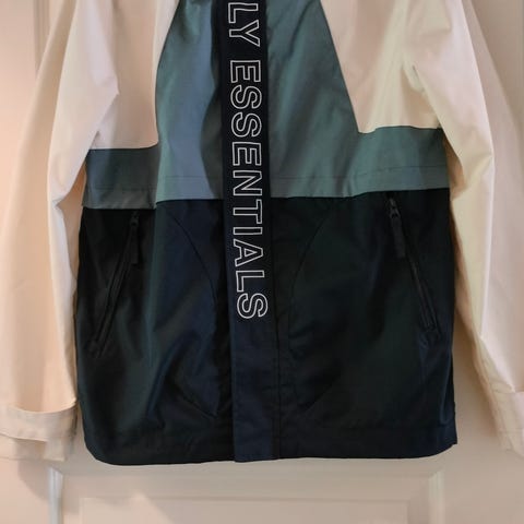 Vetoketjutaskut x 3, povitasku nepparilla ja hupussa kiristysnyörit. Paksu ja lämmin.