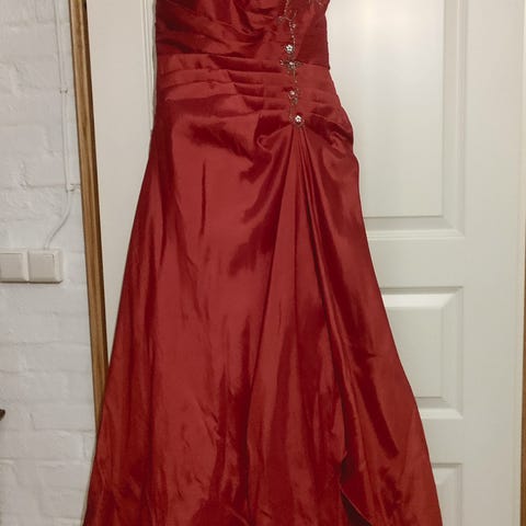 Myydään kerran käytetty juhlamekko koossa S. Ollut käytössä n. 163 cm käyttäjällä ilman korkokenkiä. Edessä toppaukset ja takana vetoketjukiinnitys.