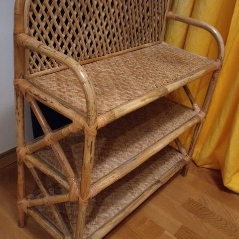 Kaunis hylly. Vahvat hyllytasot. Normaalia patinaa maalipinnassa.