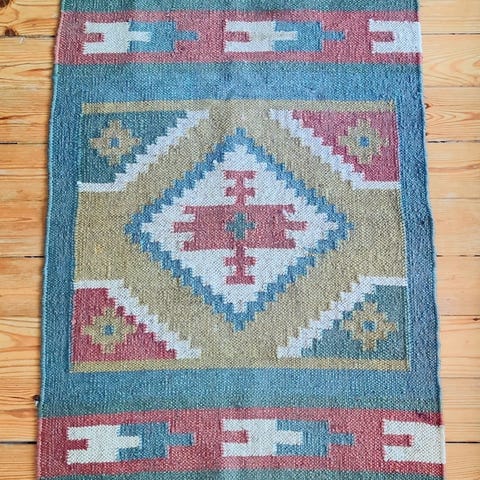 Tine K pieni matto 65x95cm. Kunto käytetty ok, toinen maton pää korjattu (kuvassa). Ei lemmikkejä.