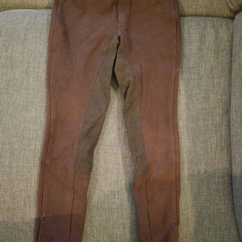 "joustavaa puuvillatrikoota, normaalikorkuinen vyötärö ja satulaleikkaus. Joustavat lahkeensuut. Vyölenkit. Vetoketjutasku edessä. Kokogrippipi."