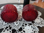 Myydään pari kertaa käytetyt Iittalan Kastehelmi kynttilälyhdyt, väriltään punainen lasi, 2 kappaletta. Lähes uudenveroiset.