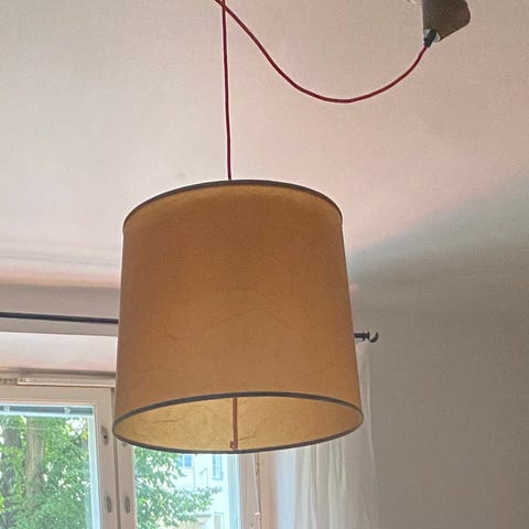 Myydään Kave Home -varjostin riippuvalaisimeen. Paperimassaa, kevyt, valkoinen. Halkaisija 30,5 cm, k 29 cm. Sopivia johtosettejä saa mm. Ikeasta/K-raudasta. Nouto Espoosta.
