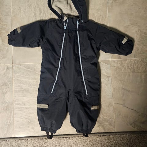 Hyväkuntoinen kyläreissuilla käytetty puku, hihan- ja jalansuut ehjät, jalkalenksut ehjät. Kaksoisvetoketju edessä, vuori pehmeä. Heijastimissa lahkeissa pientä kulumaa, polvet ja persikka puoli ehjä.
