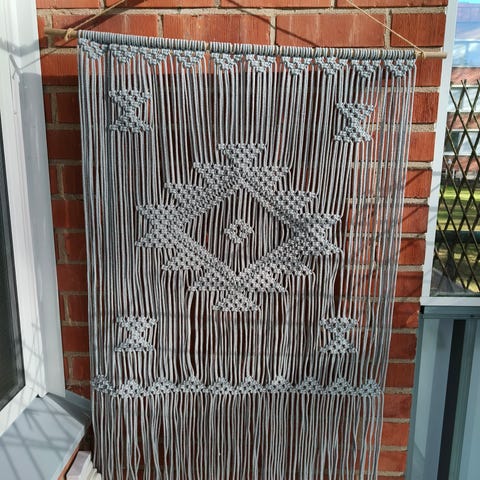 Kuvan harmaa makramee ylimääräisenä. Korkeus 70 cm ja leveys 65 cm. Savuton, lemmikitön ja uudehko talous. Soita 0503838653 ja hae pois.
