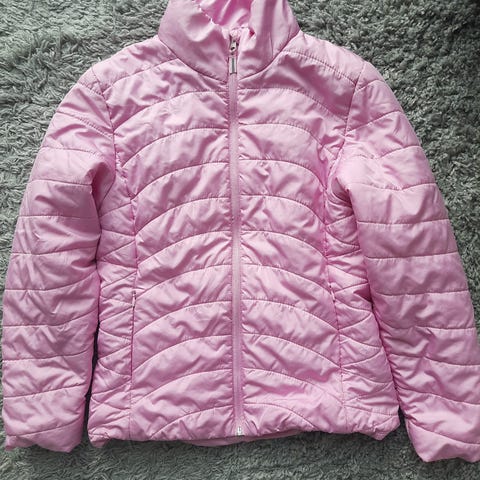Cheetah kevyttoppatakki. Värinä vaaleanpunainen ja koko 152,