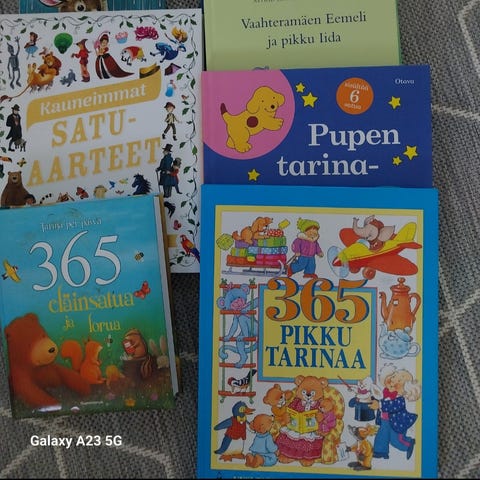 Kokoelma 10kpl lasten satukirjoja, sisältäen Disney-hahmoja kuten Nalle Puh sekä muita tarinoita. Kirjat ovat värillisiä ja sisältävät kuvituksia. Sopii lasten lukemiseen ja satuhetkiin.