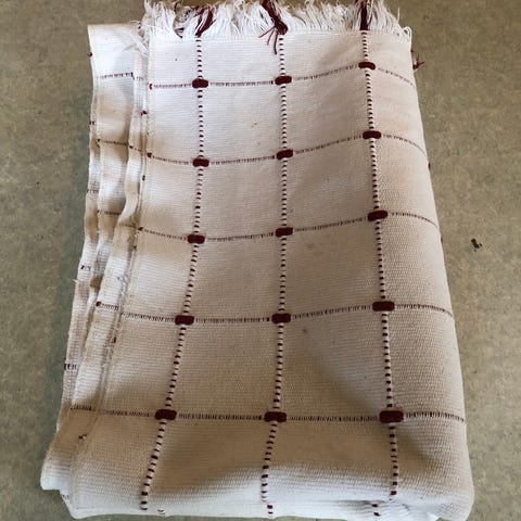 Siisti, tahraton ja ehjä puuvillamatto leikkisällä toukkakuviolla.