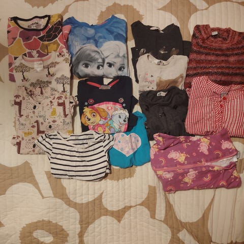 Myydään siisti ja ehjä vaatepaketti tytölle koossa 98/104-104. Vaatteet hajusteettomasti pesty. Savuton ja eläimetön koti. Nouto Karhunmäestä tai postitus, Toridiili käy myös.