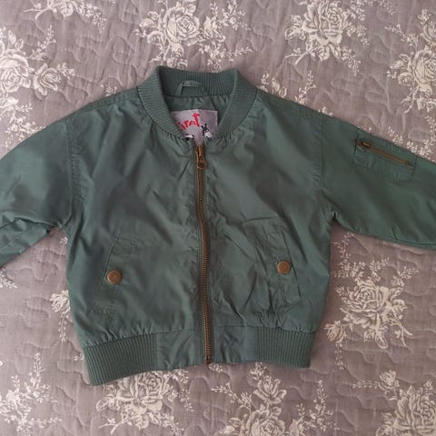 Kerran päällä ollut takki, jäi pieneksi. Pehmeä ja lämmin, 100% polyesteri. Edessä pienet taskut tarranauhalla.