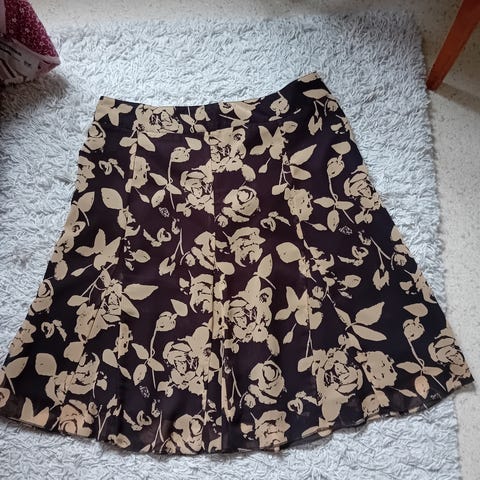 Kaunis sinivalkoinen pliseerattu hame. Koko 40. Hameessa yläosassa sinisessä kohdassa pieni tahra. Pesussa varmaankin lähtee. Vähän käytetty.