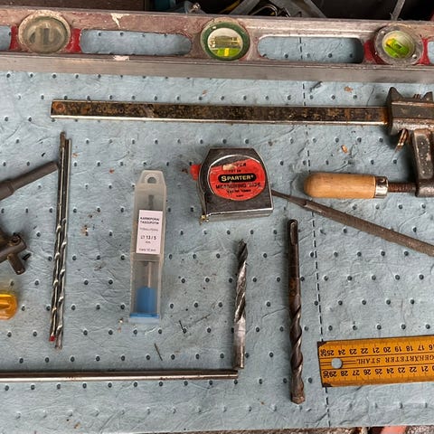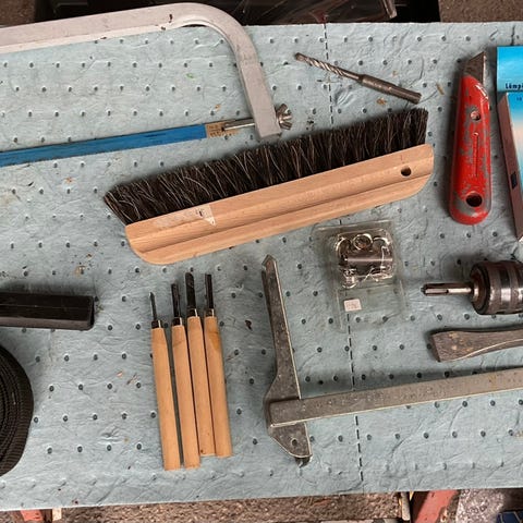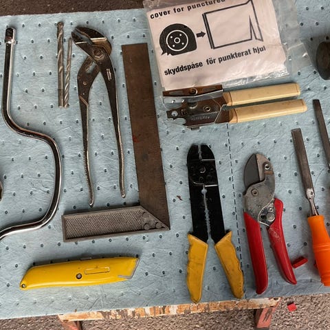 Sekalaisia työkaluja ja tavaroita.