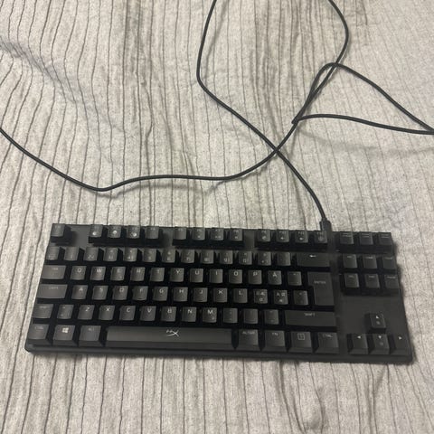 Puhdistetaan enne myyntiä, nyt hieman pölyinen. Täysin toimiva laadukas hyperx alloy fps- näppäimistö, jossa kirjaimet hohtavat eri väreissä. Mekaaniset kytkimet. F-kirjain kulunut, mutta toimii normaalisti. Mukana kiinnitysjohto, jolla näppäimistön saa kiinnitettyä tietokoneeseen. Ei sisällä punaisia vaihtonäppäimiä eikä näppäinten vaihtotyökalua. Mukana tulee näppäimistön suojapussi. Vain nouto. Ovh 90€. Lisäksi hiirimatto 32cm x 40cm.