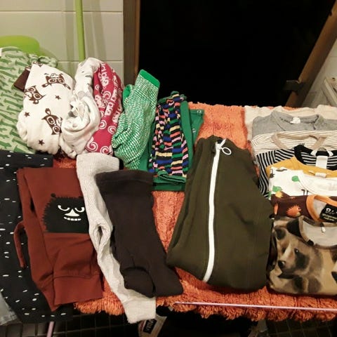 Laatikollinen vauvan vaatteita ja asusteita myynnissä koossa 74 - 80cm. Suurin osa tytölle, mutta runsaasti myös neutraaleja, joitakin poikasävyissä. Merkkeinä mm Mini rodini, molo, marimekko, muumi, me&i, Pop, lindex, hm, peuhu, mywear, pomp de lux, name it, gugguu, newbie. 1-3e/kpl, kalliimmat merkit yksittäin 5-15e. Useampia vaatteita ostettaessa pyöristellään summia tai voidaan koota paketti halutulle summalle.