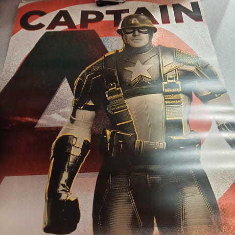 Myydään videovuokraamossa rekvisiittana ollut Captain America The First Avenger -kangasjuliste. Juliste on iso: Pituus ainakin 180 cm ja leveys 80 cm.