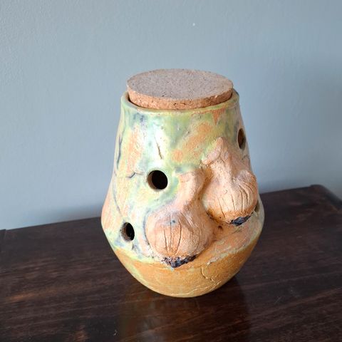 Vintage kannellinen keramiikka purkki astia signeerattu TR