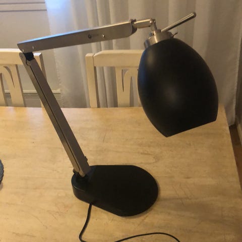 Hyvässä kunnossa oleva muovinen pöytälamppu. Korkeus: 51cm