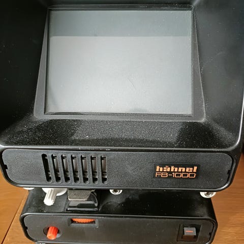 Ilmeisesti kaitafilmin katselu ja editointi laite. Valo ei toimi, virrat tulee lampun kannalle mutta lamppu rikki. Lamppu tavallinen hehkulamppu jota käytetään autoissa 6V/10W.