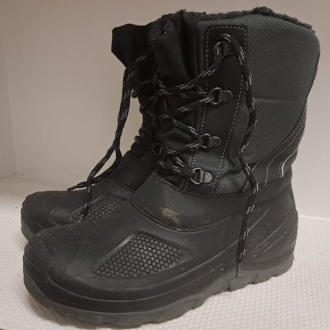 Saappaat itsessään hyväkuntoiset. Etureuna saappaan ylhäällä hieman kulunut, kuten näkyy kuvissa. Ei vaikuta vedenpitävyyteen.