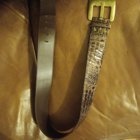 Nahkavyö miesten käyttöön. Vyössä on metallinen solki. Kokonaispituus 96cm.