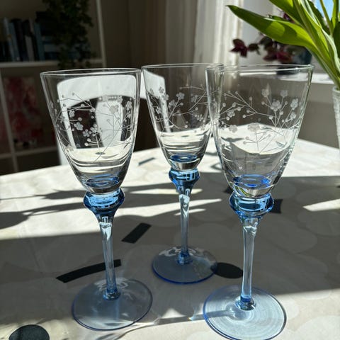 Kauniit laakeat kuohuviinilasit 4 kpl. Kaunis spiraalimainen koriste kuvio alhaalta alkaen. Nouto tai toridiili.