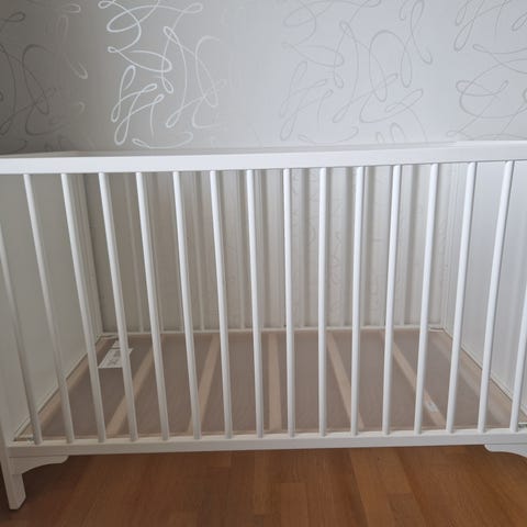 IKEA Pinnasänky lasten huonekalut, valkoinen väri. Sopii vauvoille ja pienille lapsille. Valmistettu kestävästä materiaalista, suunniteltu turvalliseen nukkumiseen ja lastenhuoneeseen.