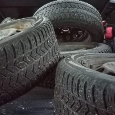 4 kpl nastarenkaita, Pintaa 6-7mm, osa nastoista irronnut.