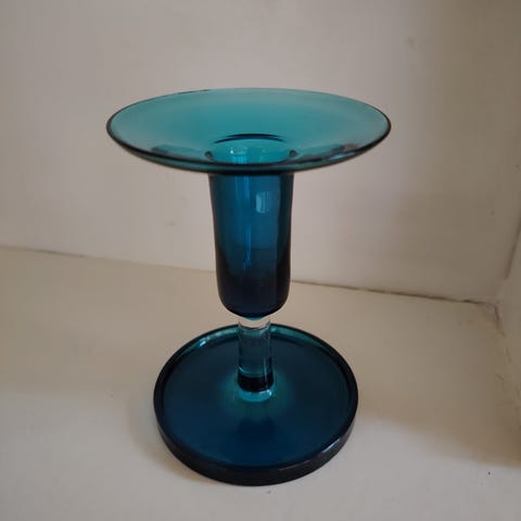 Turkoosi, korkeus 23cm, signeeraus pohjassa, valmistaja Riihimäen lasi