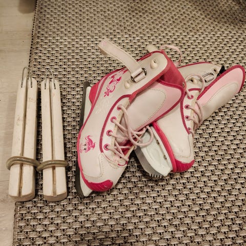Säädettävät luistimet solkikiinnityksellä. Nopeat pukea.