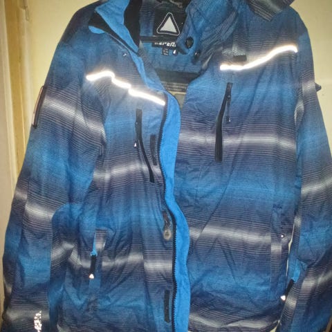 Hyväkuntoinen ja tosi vähän käytetty Starter-merkkinen toppis. Väritys tummansininen/oliivinvihreä. Muutoin en virheitä löytänyt kuin yksi lankapako hihaompeleessa (ks. kuva). Hartia-helma pituus 65 cm.