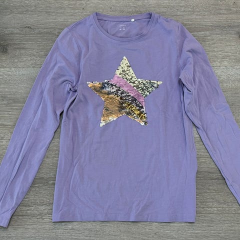 NameIt vaalea violetti pitkähinainen paita, edessä kääntöpaljetti tähti, koko 146-152