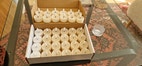 Vain yhden illan käytössä olleet paristokäyttöiset sähkötuikut ja kupit seuraaville juhlijoille. Valo on mukavan lepattava ja aidon tulen tuntuinen. Nämä ovat paljon hienommat ja tunnelmikkaat, kuin pelkät staattiset sähkövalot joita markkinoilla myös näkee.
