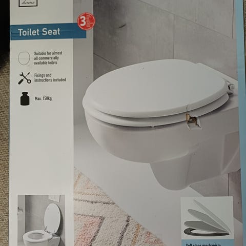 Valkoinen WC-istuimen kansi valmistettu muovista. Helppo asentaa ja puhdistaa. Pientä käytön jälkeä, varsin siisti.