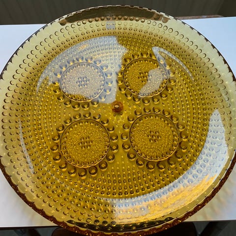 Koristeellinen kuviopinta ja paksu lasi tekevät tästä suomalaisen designin klassikosta näyttävän osan juhlakattausta tai keräilykokoelmaa.