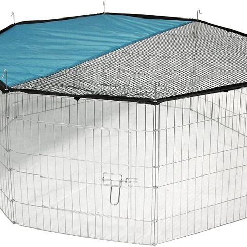 Myydään kanin tai marsun ulkoaitaus. Koostuu 8 seinästä. Käytetty kunto. Ollut ulkona, joten mukana tulee mahdollisesti hieman ulkoroskaa. Pääliverkossa pieni repeämä reunassa, ei haittaa käyttöä, katso kuva. Vastaavanlainen kuin https://www.zooplus.fi/shop/jyrsijat/aitaukset/metalliaitaukset/kahdeksankulmaiset/226144?activeVariant=226144.0