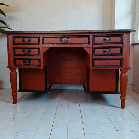 Vanha myymälä pöytä, tarkkaa tietoa iästä ole. 51x131x86 cm