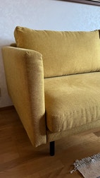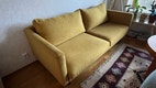 Virheetön 3-istuttava sohva sinapinkeltaisella kankaalla verhoiltu.Vuoden vanha, aikuiskäytöstä, tukeva rakenne. Laadukas kangas,mustat putkijalat. Uuden hinta 750€.