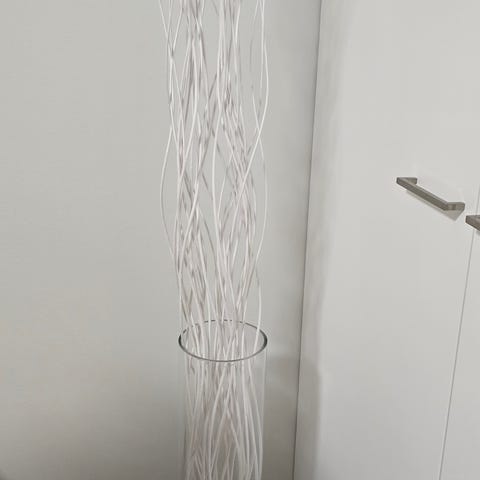 Kaunis asetelma Ikean maljakossa, maljakko on poistunut tuotannosta. Maljakon korkeus on n. 37 cm ja koristekukkien korkeus n. 60-70 cm. Hinta sisältää kuvassa näkyvän kokonaisuuden. Valkoiset kukat ovat muovia. Keraaminen maljakko on ehjä, mutta joitain käytön jälkiä esiintyy. Kukat (3 kpl) ei ole ostettu Ikeasta.