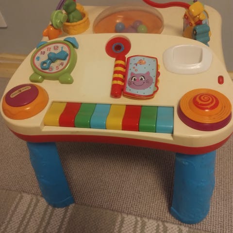Annetaan Muuramen kirjoituspöytä, lasten kokoa. Mitat: leveys 104 cm, korkeus 68 cm syvyys 52 cm. Pöydän pinta on aika hurjassa kunnossa ja vaatii maalauksen tms. Muuten kunto tukeva ja hyvä. Näitä on tarjolla toinenkin samanlainen.