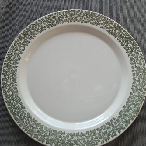 Ikäisekseen hyväkuntoiset lautaset piippuleimalla . Valmistettu kellertävästä massasta. Lautasten halkaisija 23,2 cm. Toisessa sormelle tuntuva särö lautasen alapuolella reunassa.