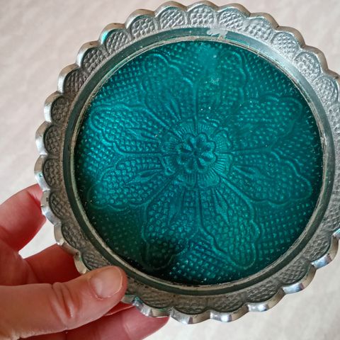 Vanha savinen kynttilä alusta; korkeus10,5 cm ja halkaisija 13 cm
