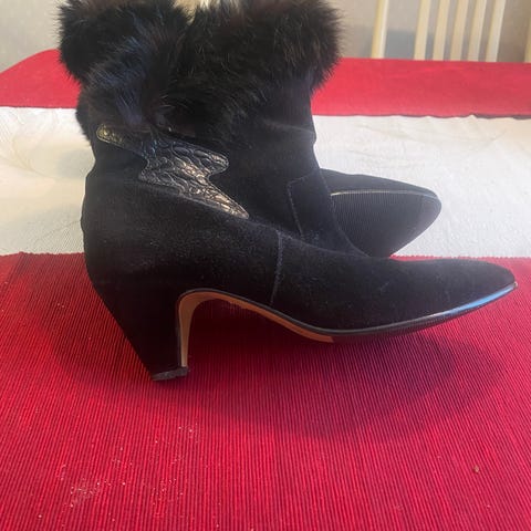 Musta talvikengät, koko 38, korot noin 9 cm. Kengissä on vetoketju sivussa ja taitettava varren yläosa. Materiaali mokkaa.