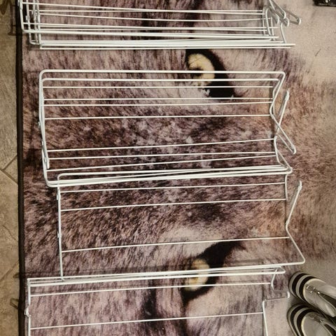 Ahtaaseen eteiseen paljon kenkiä imevä Ikea Algot säilytysjärjestelmän kenkähylly.