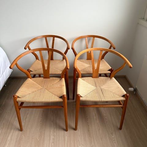 Ostetaan CH24 Wishbone-tuoleja, materiaali/sävy soft black (maalattu pyökki, luonnonvärinen istuin). Hinta kunnon mukaan +/- 350€.
