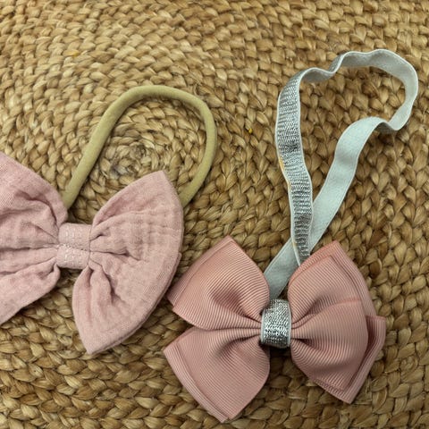 Myydään söpöt vauvan töppöset ja rusetti / rusettipanta. Väri violetti / lila ja vaaleanpunainen.