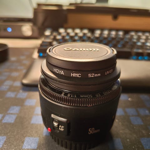 Myydään uudenveroinen Canon EF 50mm f/1.8 II -normaaliobjektiivi pois uuden kameran tieltä. Erittäin suosittu objektiivi erinomaisen hinta/laatusuhteensa ansiosta jonka optiikka on sama kuin vuoden 1987 alkuperäisessä. Objektiivi on todella kevyt ja pienikokoinen jonka oikeastaan ainut miinuspuoli on automaattitarkennuksen rahiseva äänekkyys.