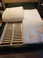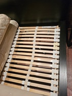 Futon sänky mustalla rungolla ja kahdella säädettävällä pohjasäleiköllä. Erilliset patjat, sisäleveys 160 cm ja koko runko 176 cm. Pituus 211 cm. Voidaan myydä myös erikseen. Sijaitsee Leskelässä.